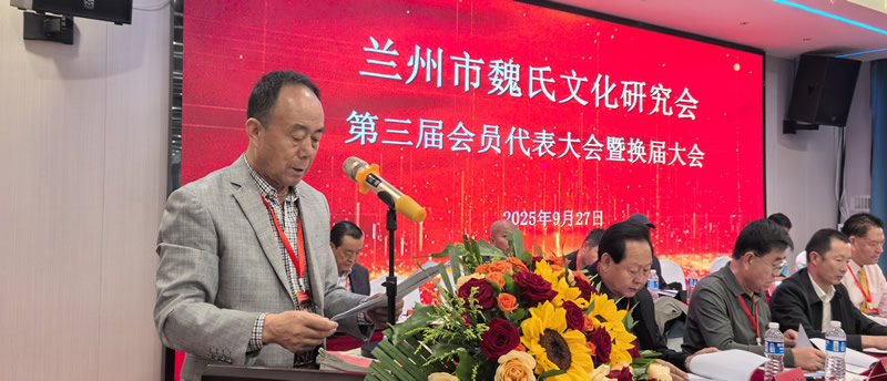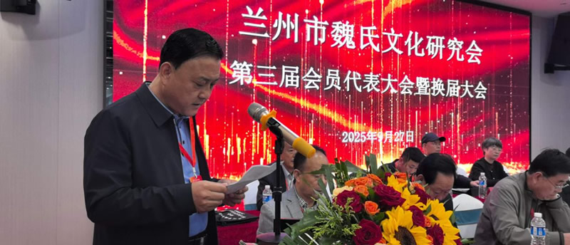 金城魏氏网兰州9月27日电(魏建军)9 月 27 日,甘肃天奇文旅园礼宴中心暖意涌动,兰州市魏氏文化研究会第三届会员代表大会暨换届大会在此隆重举行。