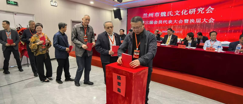 在审议环节,代表们以举手表决的方式一致通过《兰州市魏氏文化研究会第三届会员代表大会选举办法》《兰州市魏氏文化研究会章程(修正案)》,并以无记名投票方式表决通过《兰州市魏氏文化研究会财务管理制度及会费收支管理办法》,同时选举产生第三届理事会理事、监事会监事。