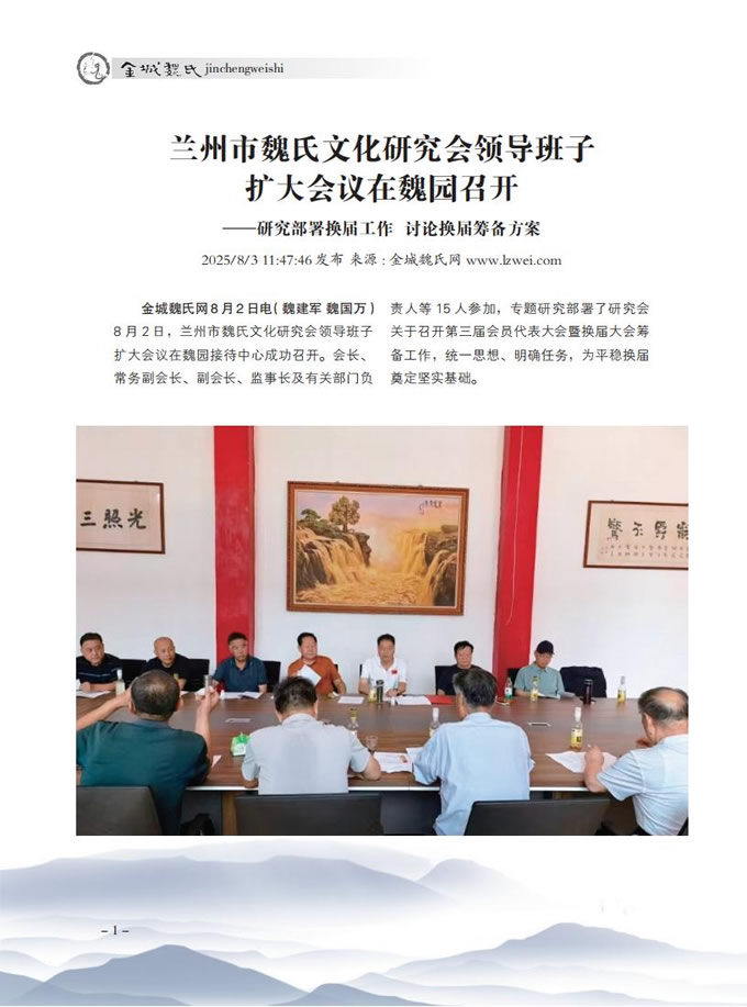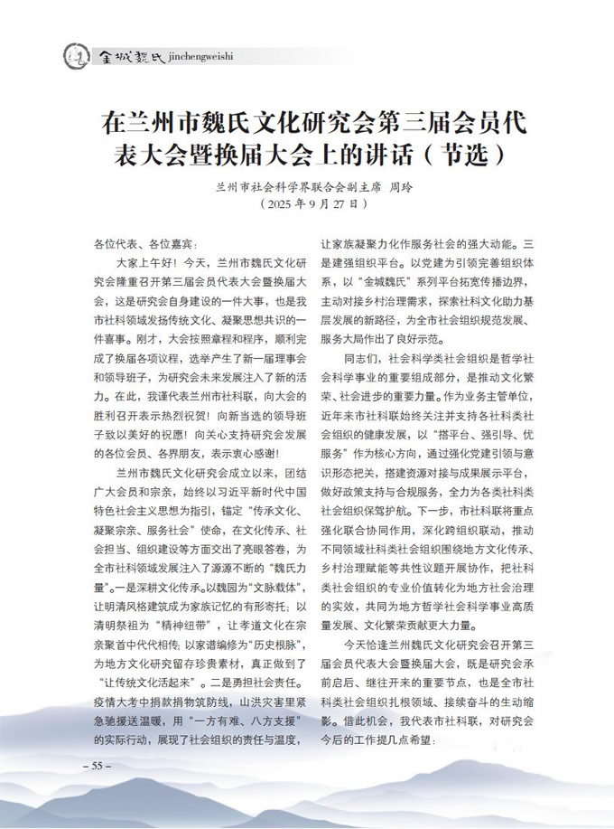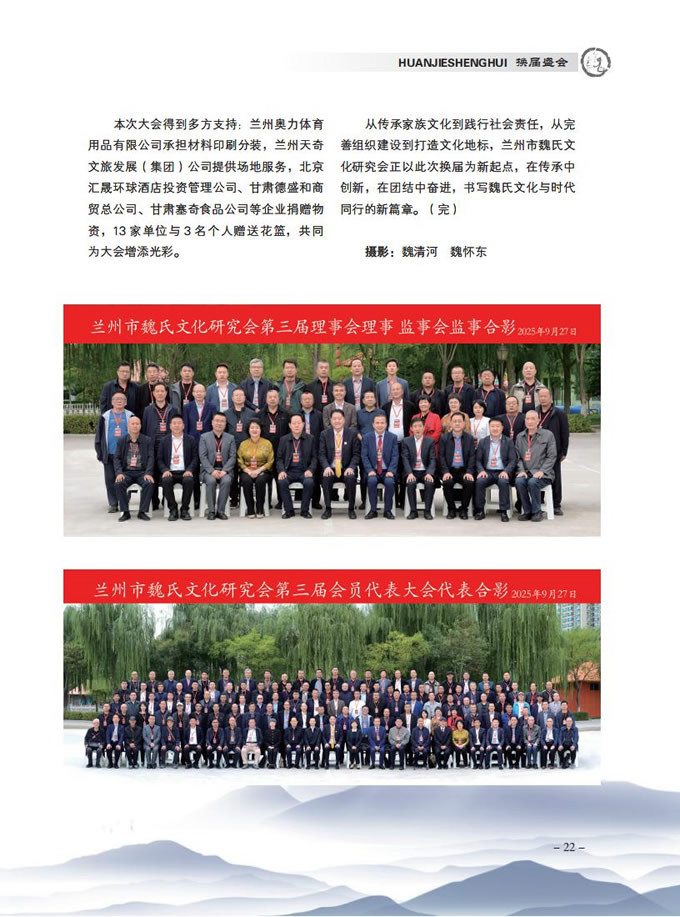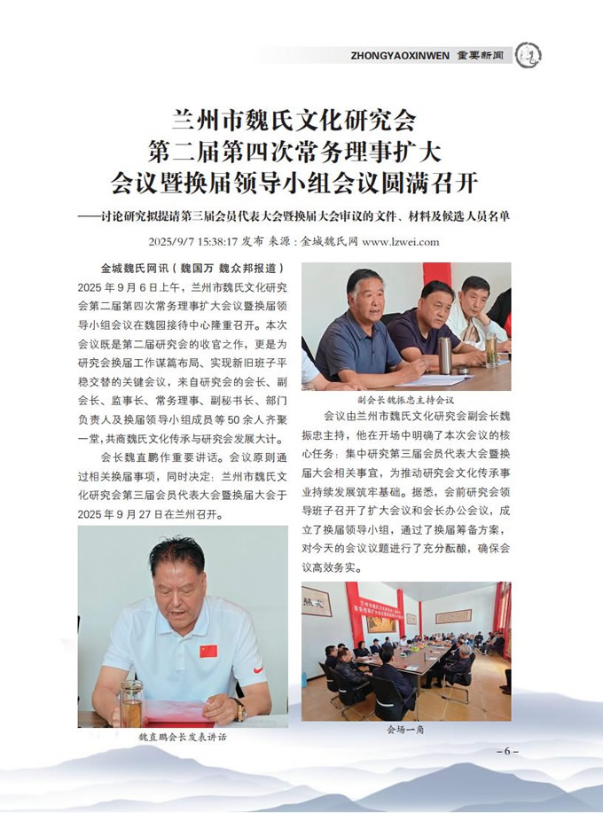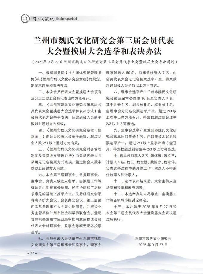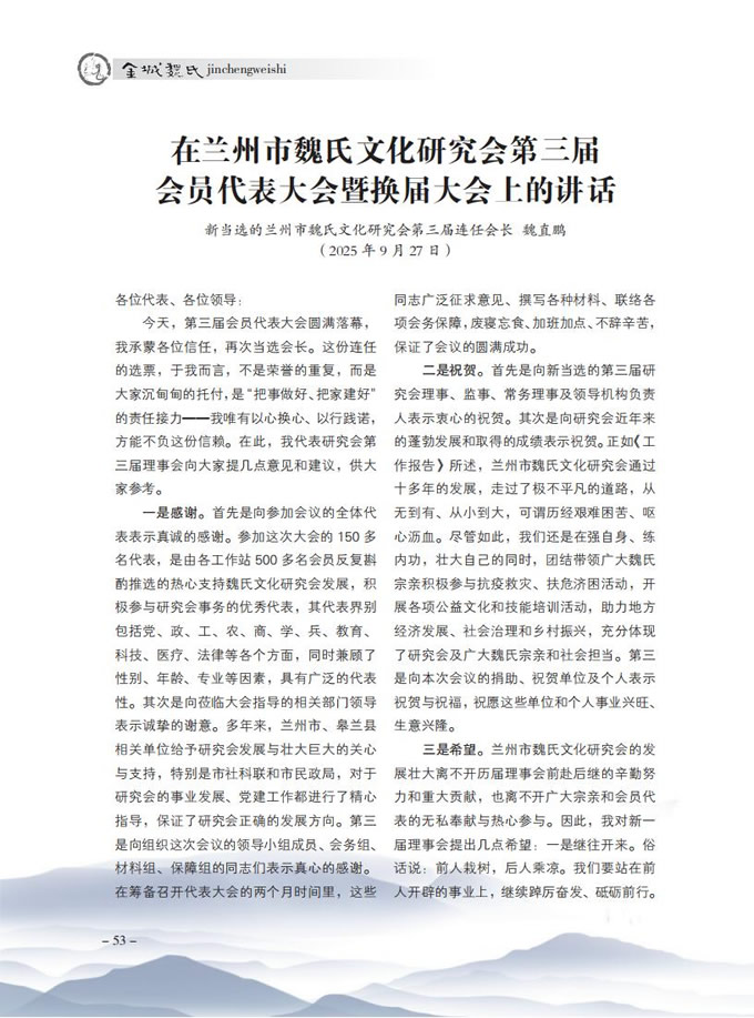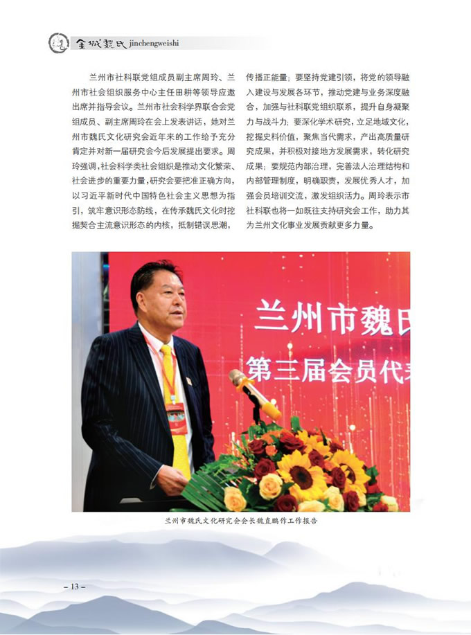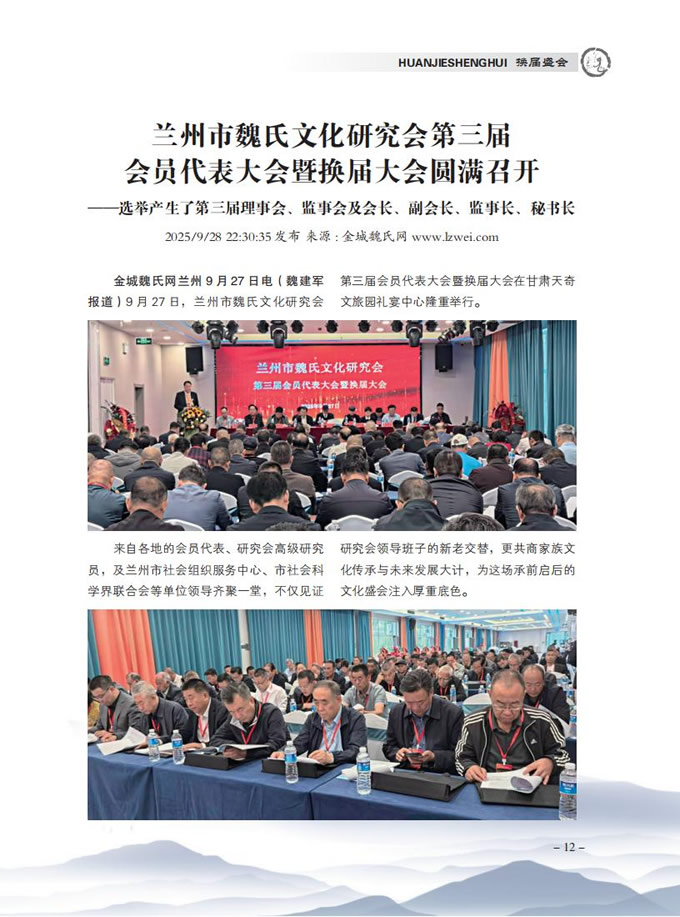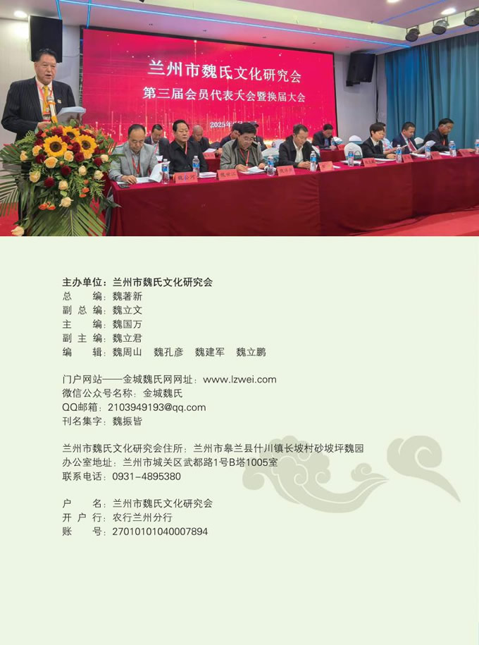 《金城魏氏》期刊第十六期要闻:兰州市魏氏文化研究会第三届会员代表大会暨换届大会在兰州隆重召开~