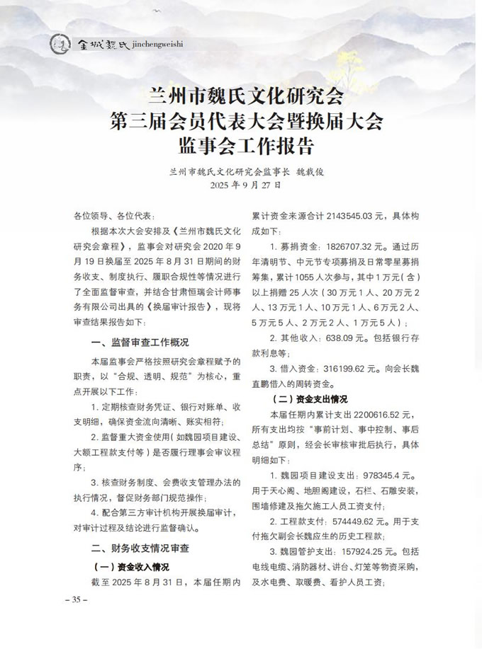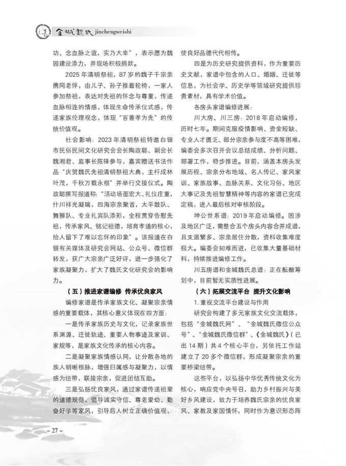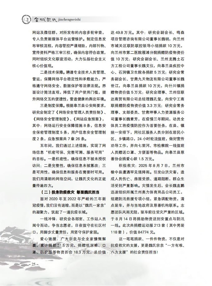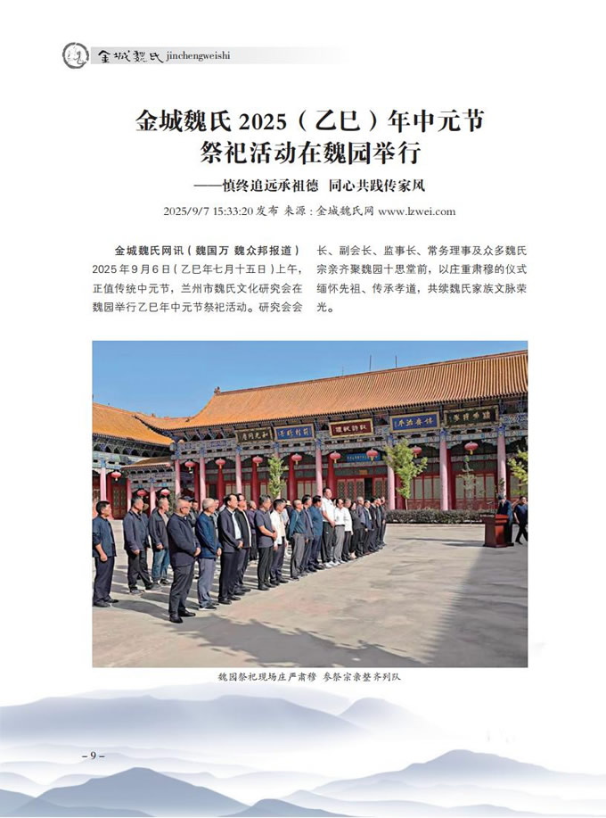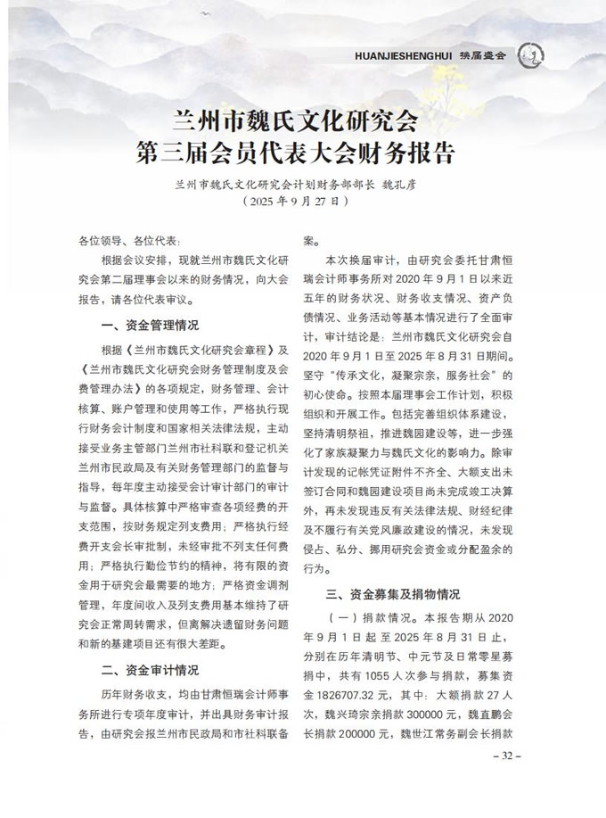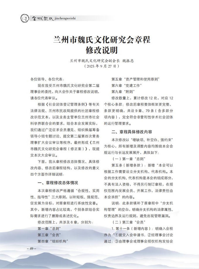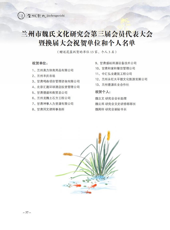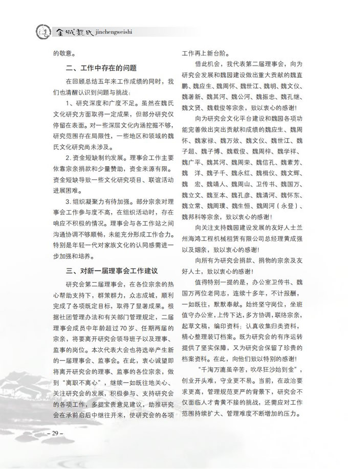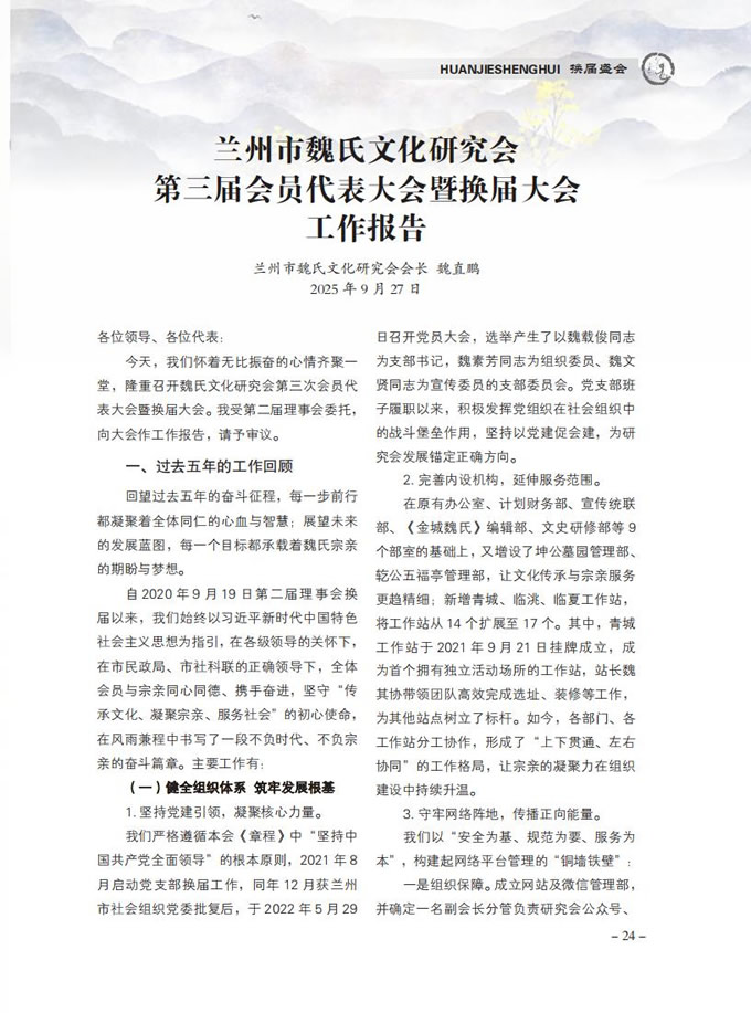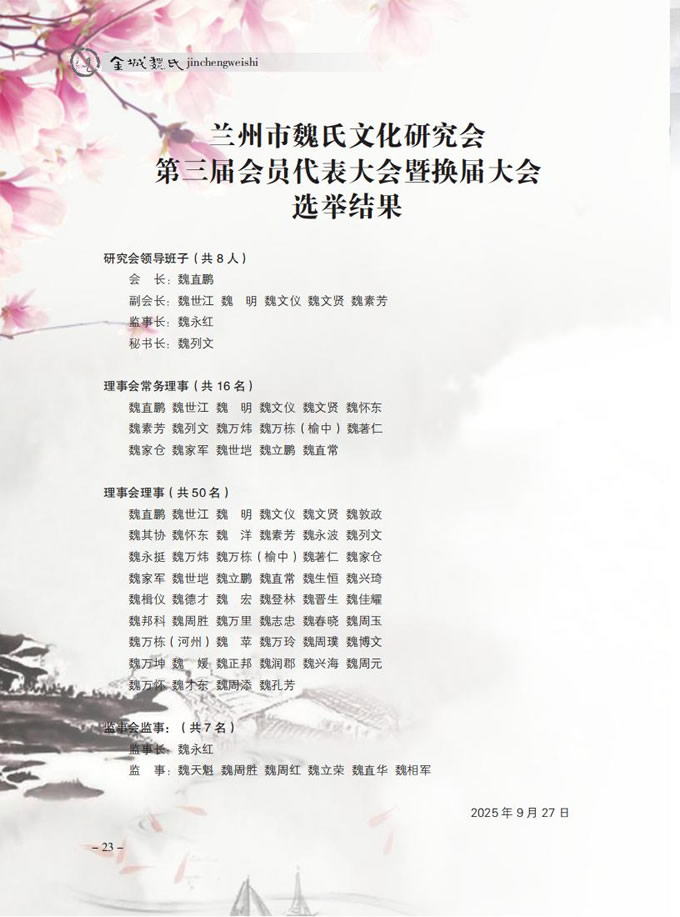《金城魏氏》期刊第十六期要闻:兰州市魏氏文化研究会第三届会员代表大会暨换届大会在兰州隆重召开~